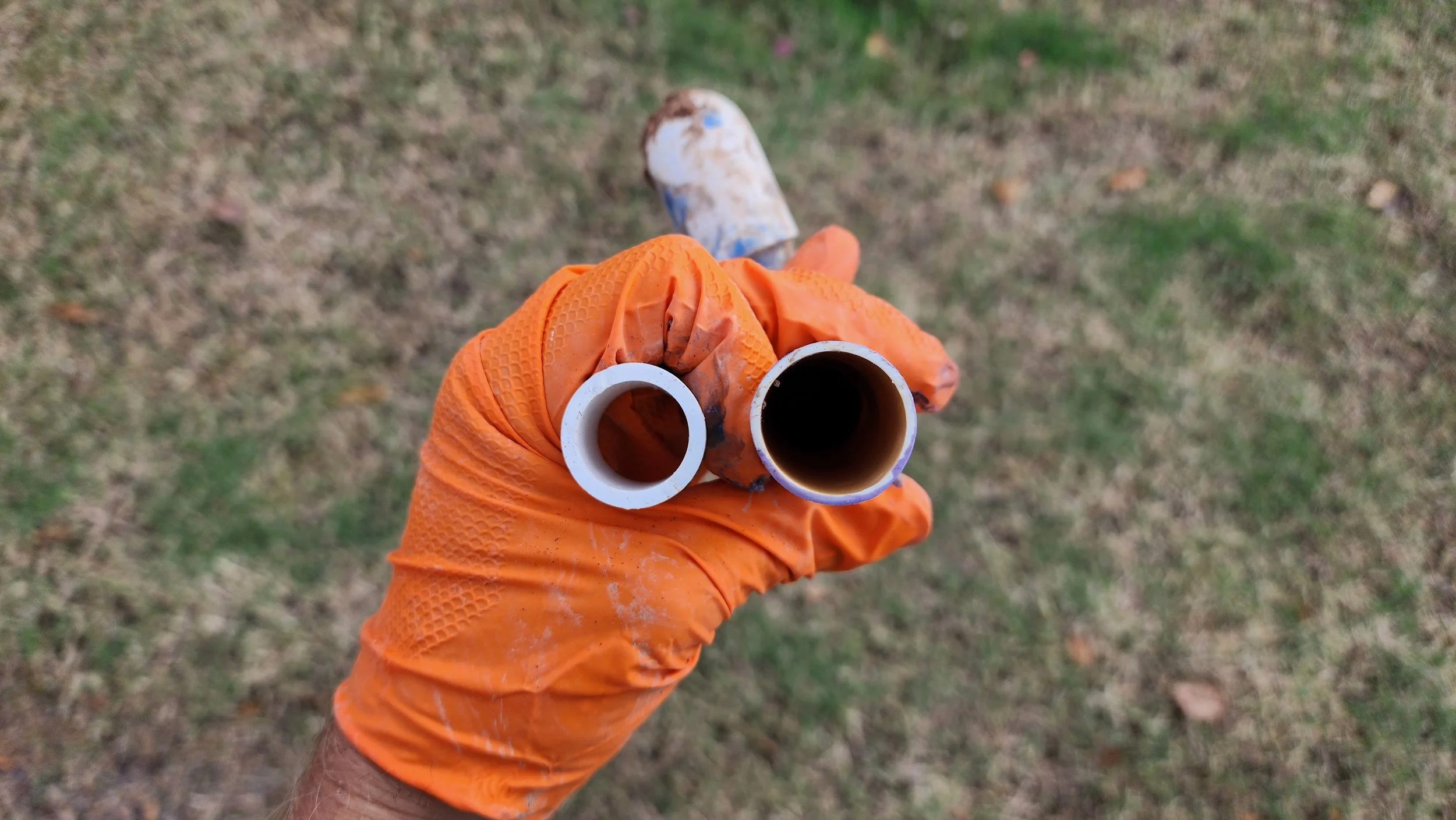 The inside diameter (ID) difference between 3/4” Schedule 40 PVC (left) and 3/4” Class PVC (right)
